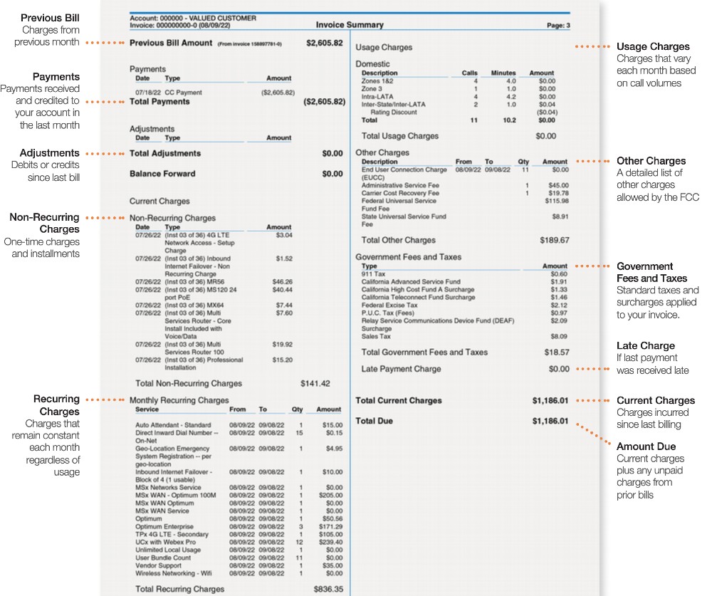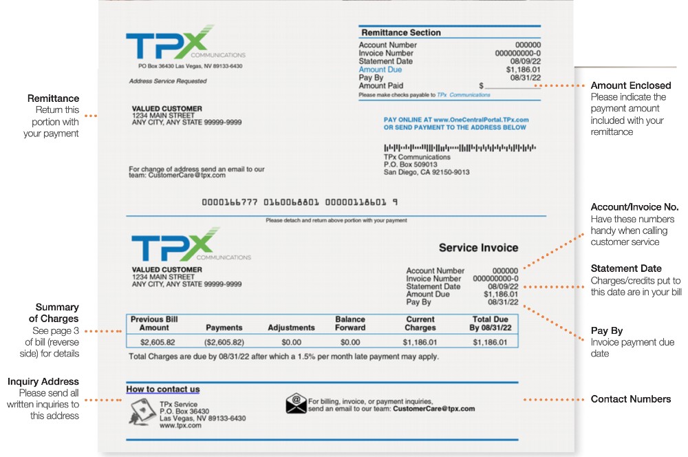 The following information breakouts will help you understand your TPx bill.
