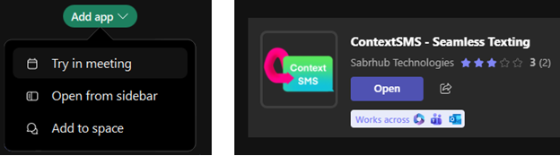 To get started: Add the Embedded App “ContextSMS” in Teams or Webex.