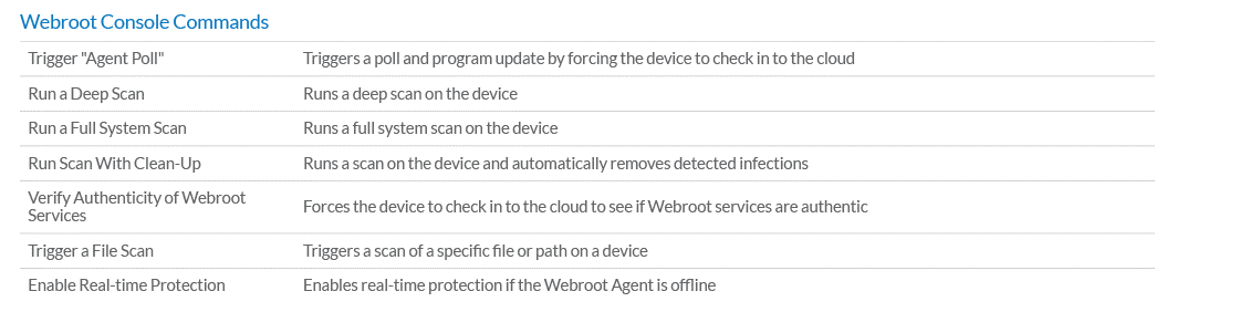 The agent communicates securely with the cloud RMM Portal to provide specific information about device health, properties, and performance. It can execute a variety of actions on the remote device such as: