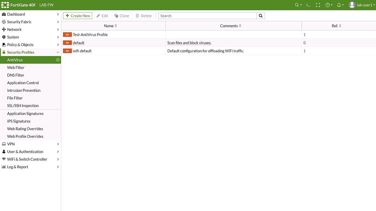 Multiple antivirus profiles can be created for different antivirus scanning requirements.