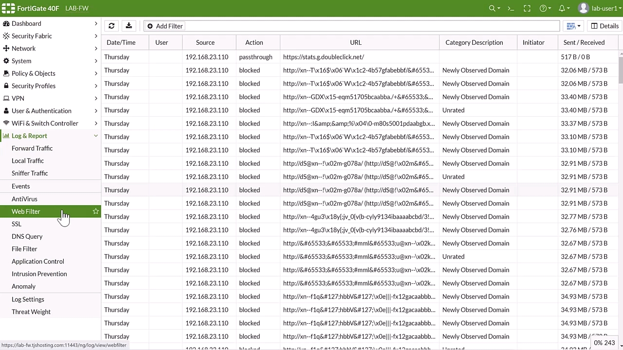 Log & Report :Web Filters