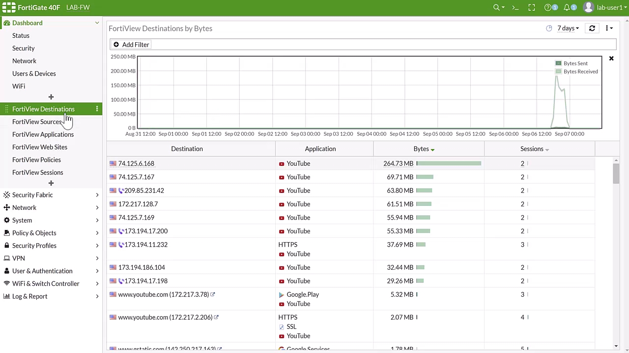 FortiView Destinations