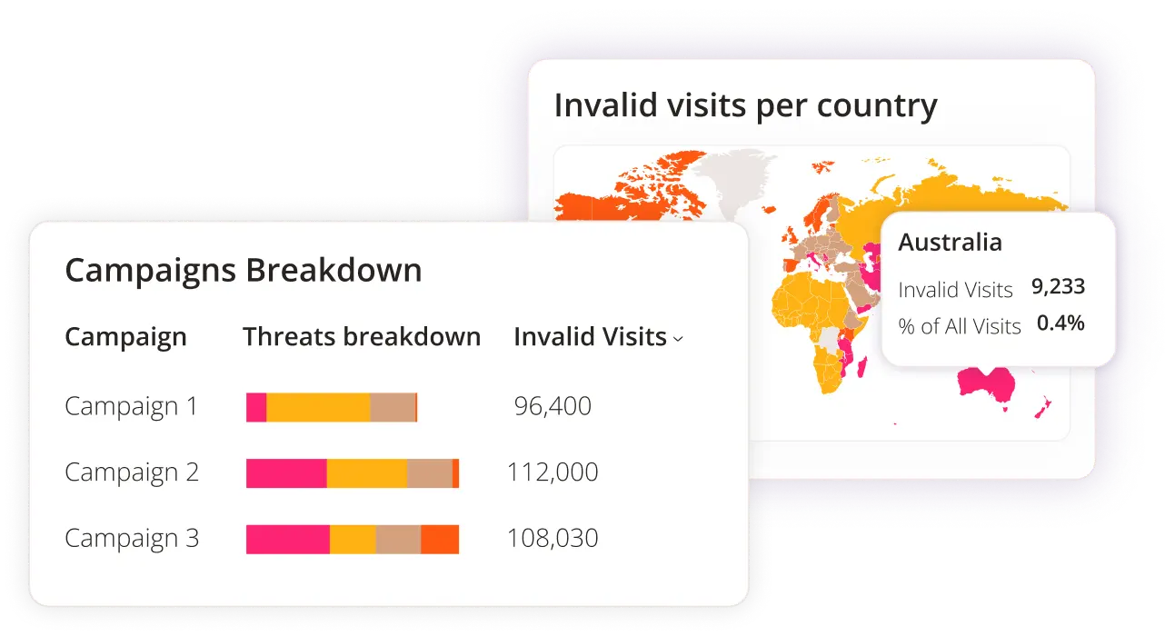 Our filters analyze every click on your Google, Meta or Bing Ads in real time. Block bad bots, click farms and other types of invalid traffic.