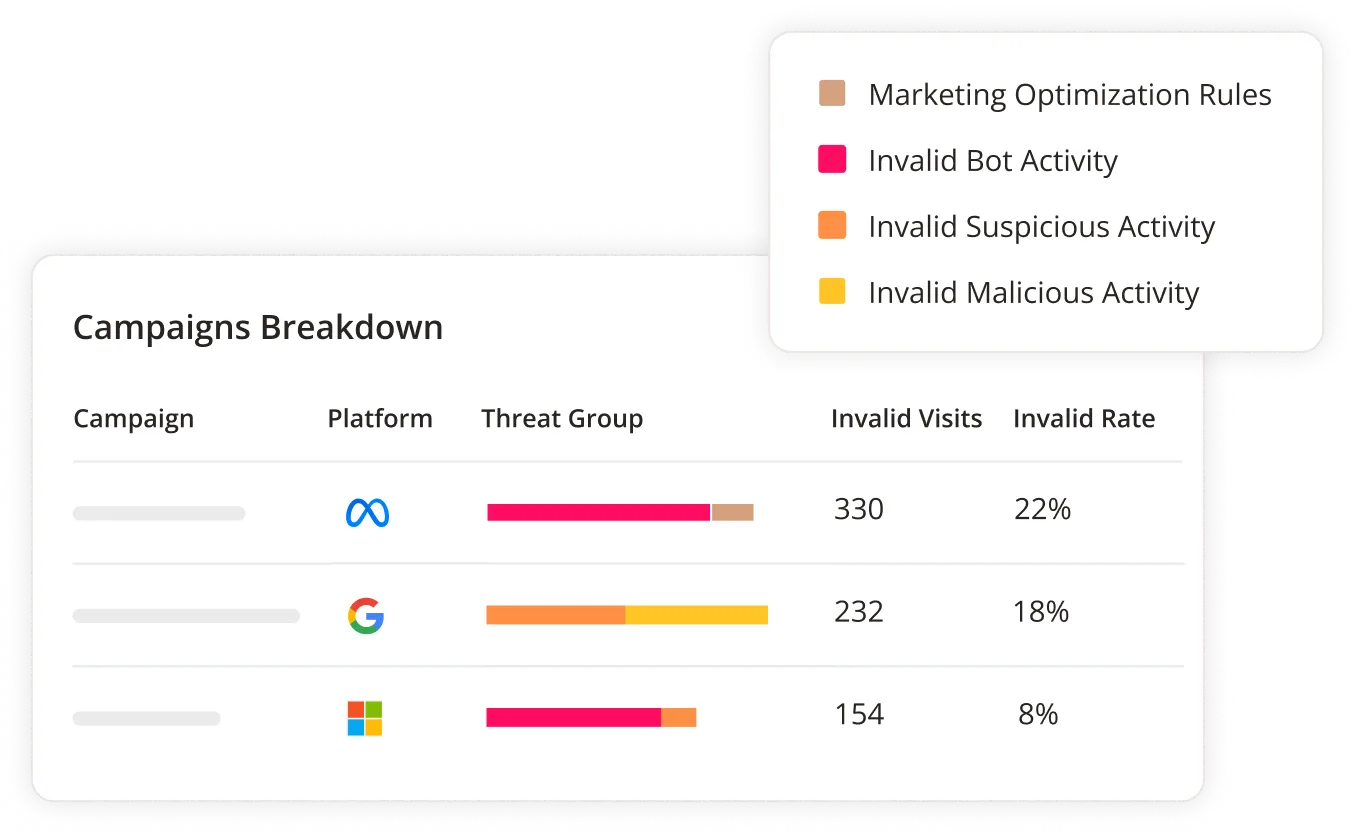 Monitor and block click fraud across multiple ad platforms. View interactions with your ads and customize your fraud filters based on your industry. ClickCease learns from your campaigns and offers suggestions to enhance your protection.