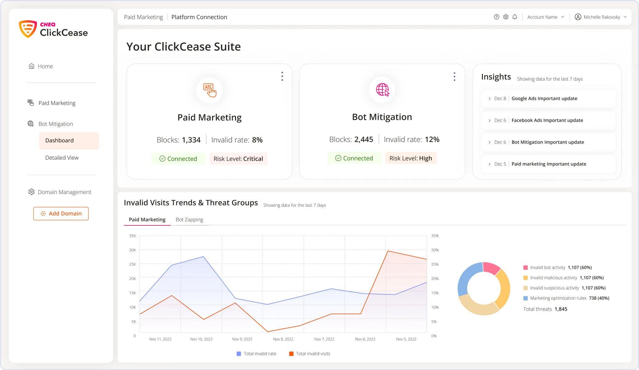 IVT truly skews your data. ClickCease uncovers what REALLY happens in your marketing funnel. See what you can do with more accurate data to make better decisions, optimize your budgets, and maximize your efforts.